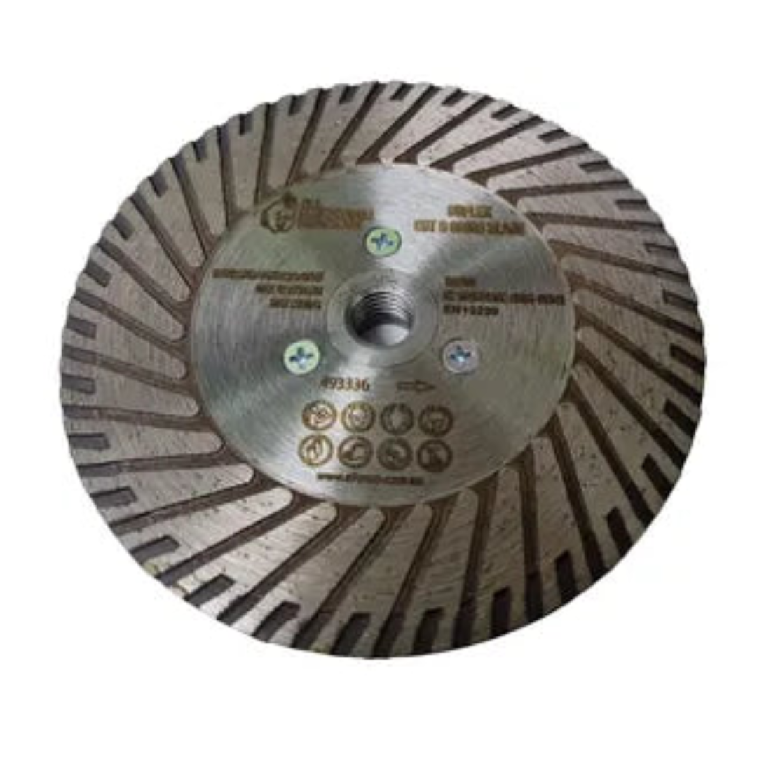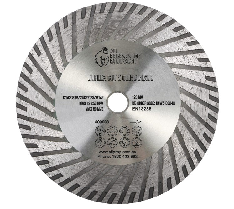 125mm (5") Duplex Cutting and Grinding 30/40 grit Flush Cut Blade with M14 thread for easy connection. 2.8mm thick with 22.23mm bore