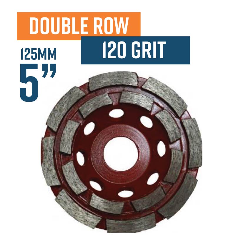 Double Row 125mm (5') 120 Grit Medium Bond Diamond Grinding Cup Wheel (Available on backorder)