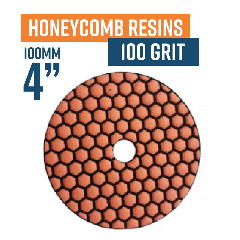 100mm (4") Honeycomb Dry Resin Bond Diamond Polishing Pad - 100 grit. Must be used on low speed.