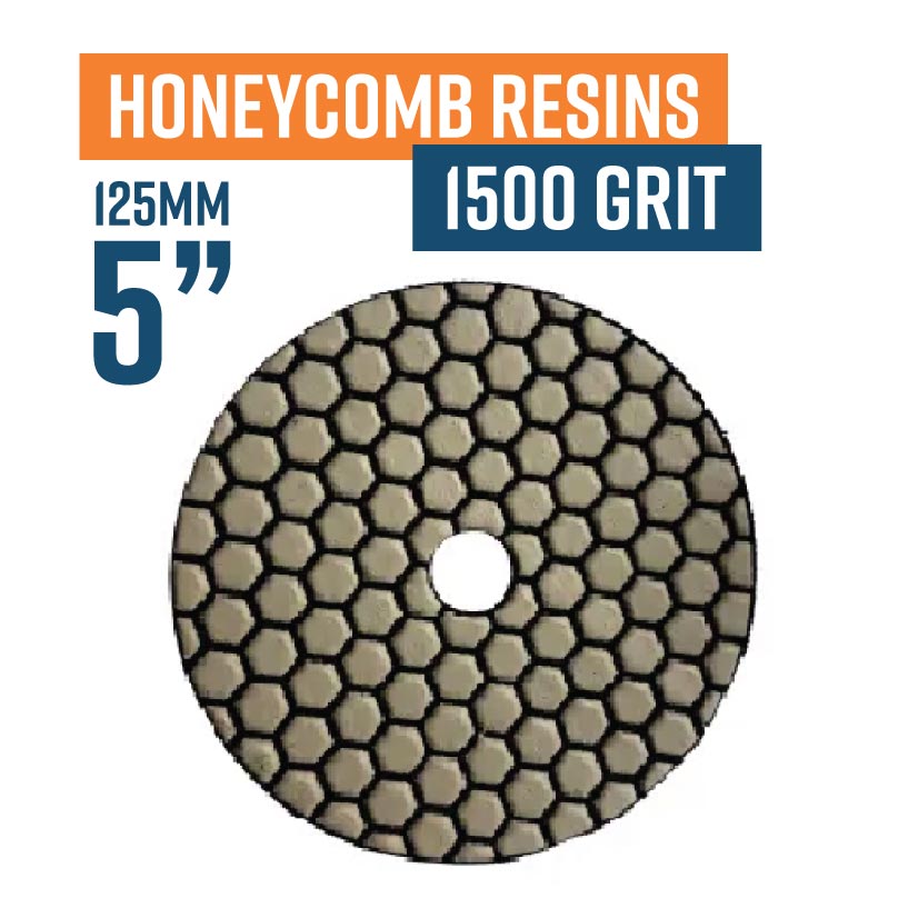 125mm (5") Honeycomb Dry Resin Bond Diamond Polishing Pad - 1500 grit. Must be used on low speed.