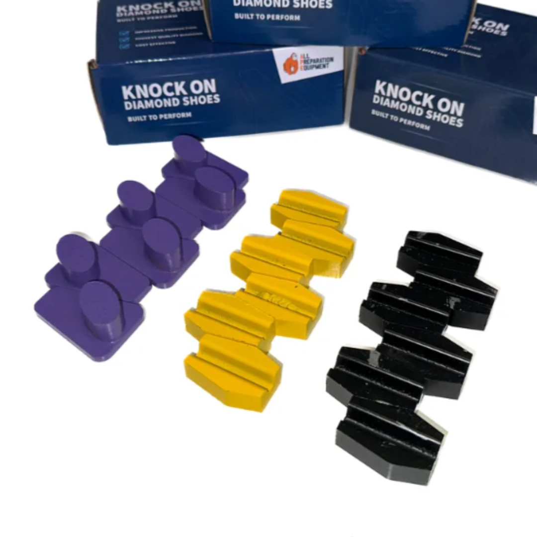 Knock On Diamond Shoe Starter Kit - Eco - Sets of 6x Purple Super Soft Bond, Yellow Medium Bond, and Black Hard Bond. Supplied in 20 Grit.
