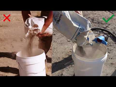 - Eliminates dust when mixing mortars, adhesives, and grouts.