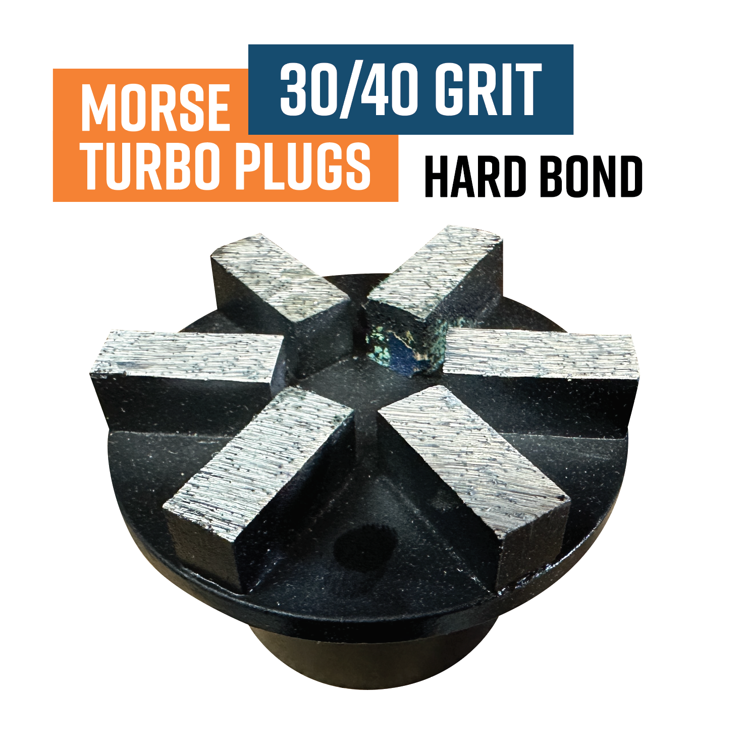 64MM MORSE TAPERED TURBO GRINDING PLUG, 30/40 GRIT, HARD BOND, 6 SEGMENT,